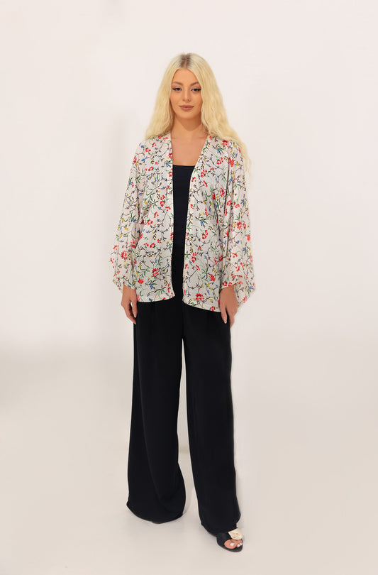 KIMONO BLACK BEIGE FLOWERS SLEEVES