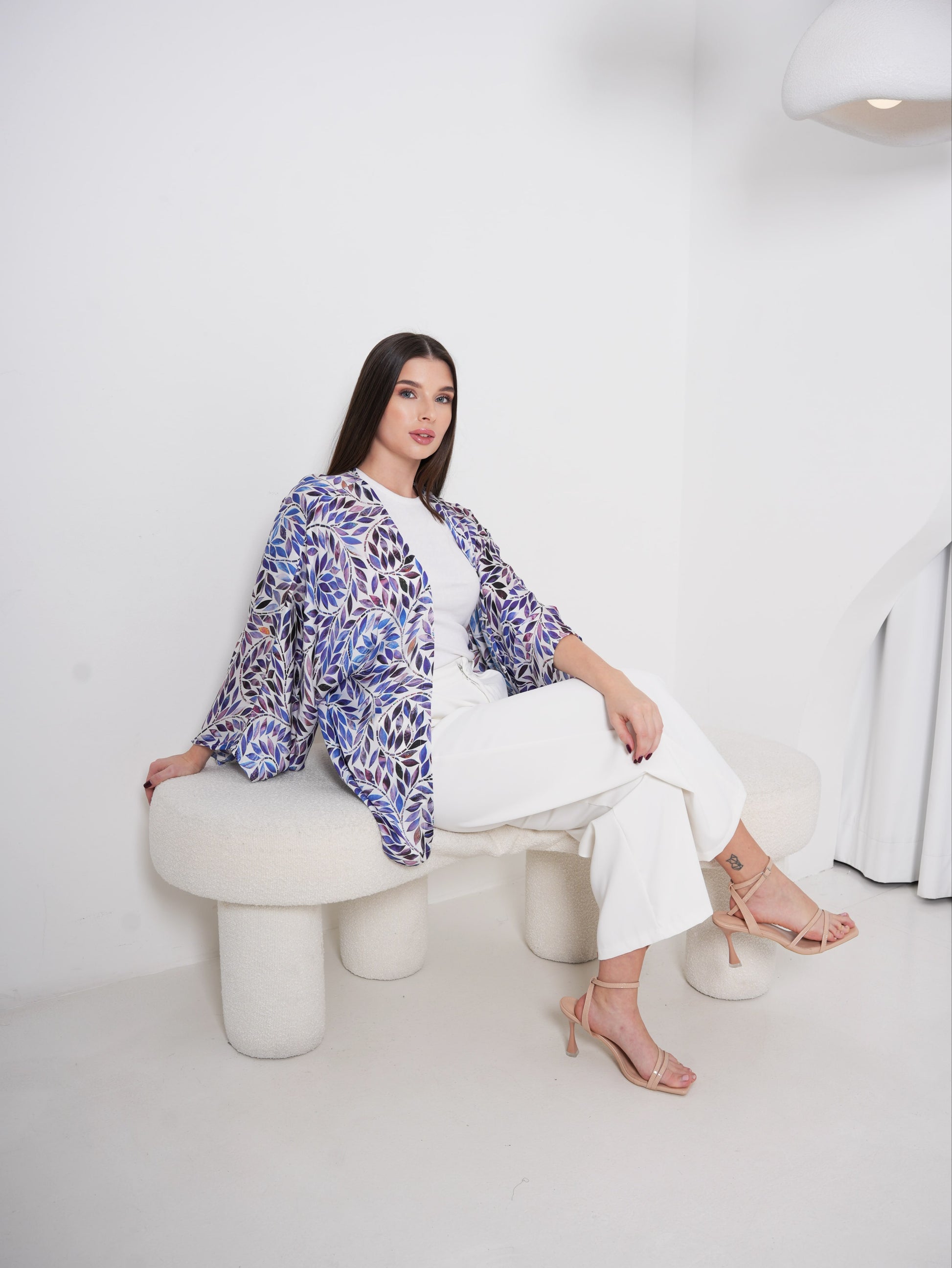 Elevate your everyday attire with this one-pattern short kimono, designed to add a captivating twist to any outfit. Perfect for those moments in the mall when you seek a touch of warmth or wish to shield yourself from the sun's glare, this kimono combines practicality with style. Lightweight and effortlessly chic, it's your go-to layering piece for a seamless blend of comfort and fashion.