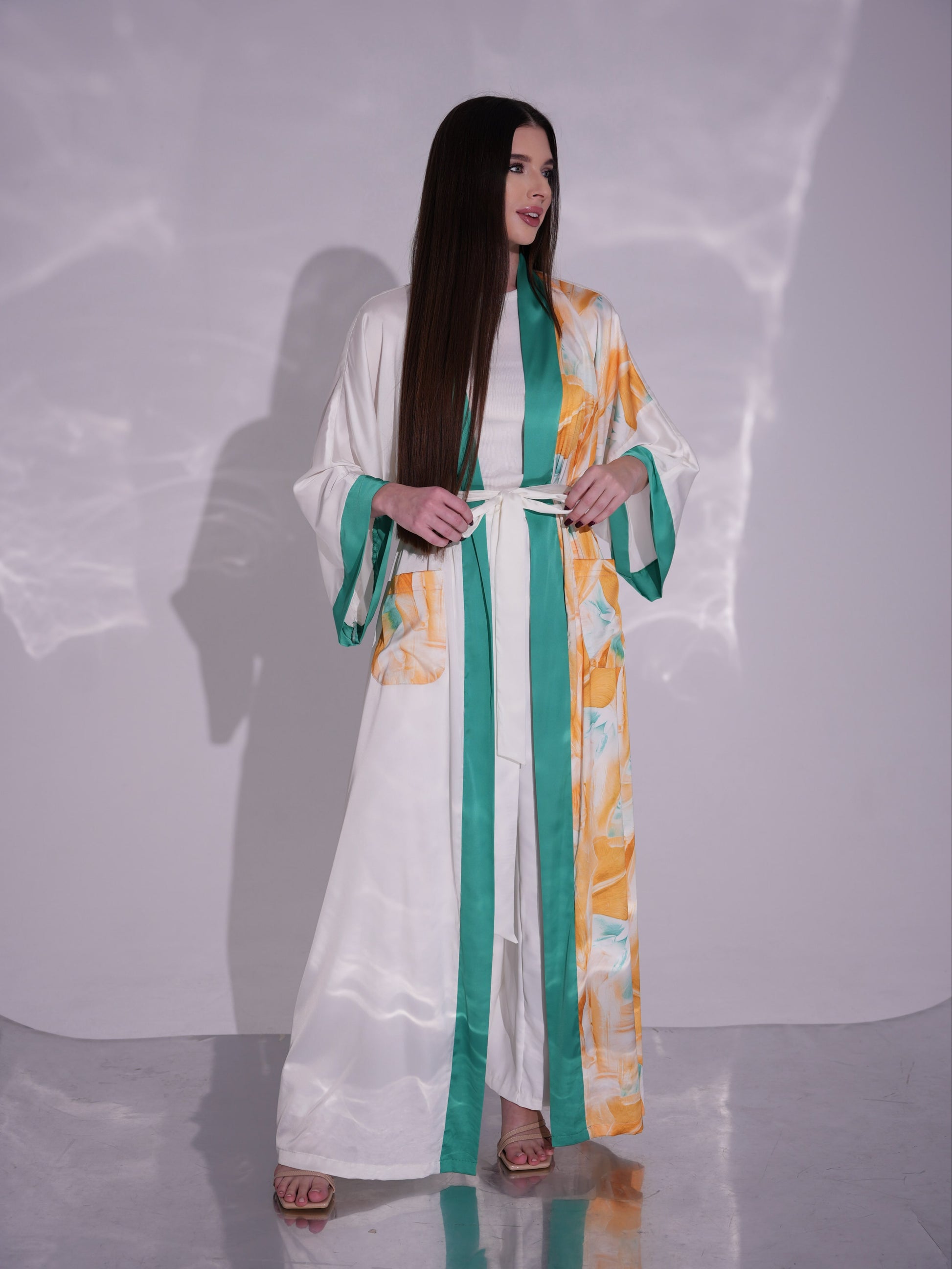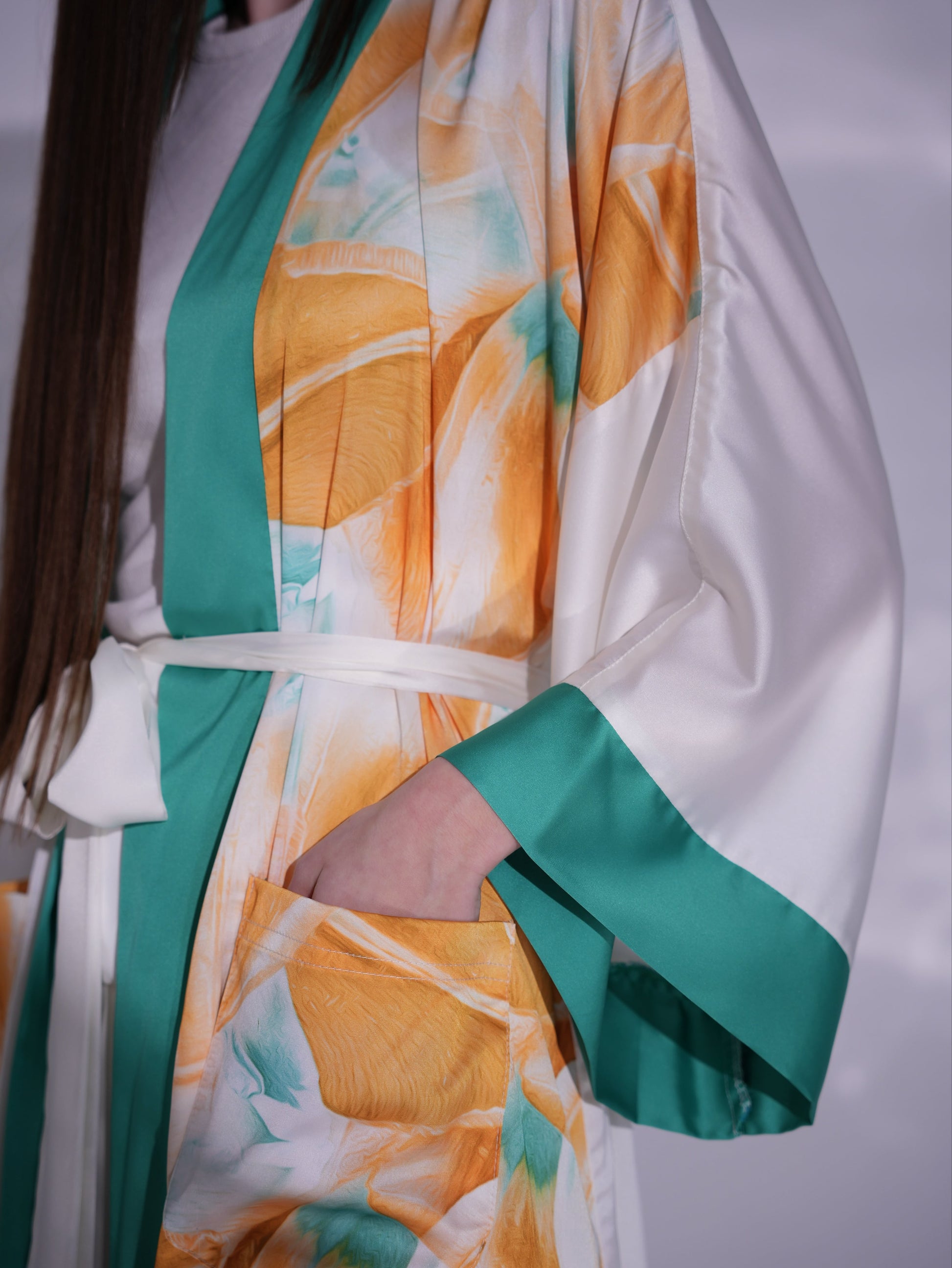 KIMONO OFF WHITE GREEN GOLD LEAVES