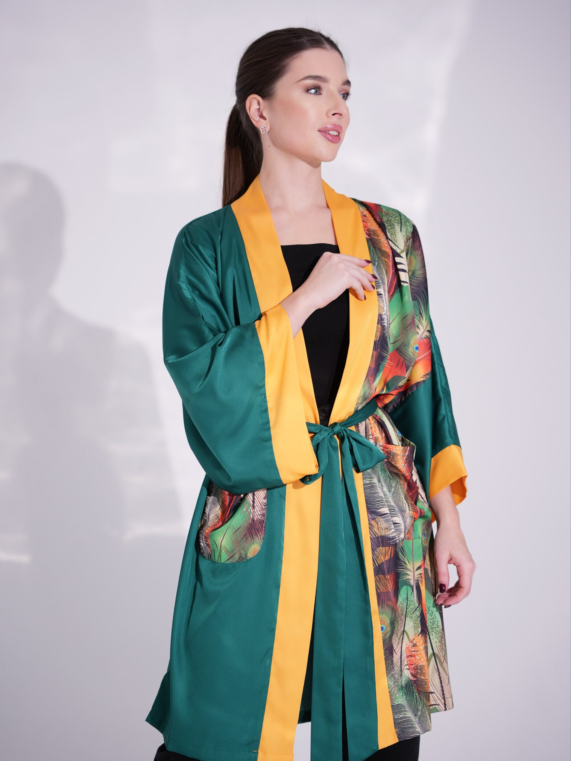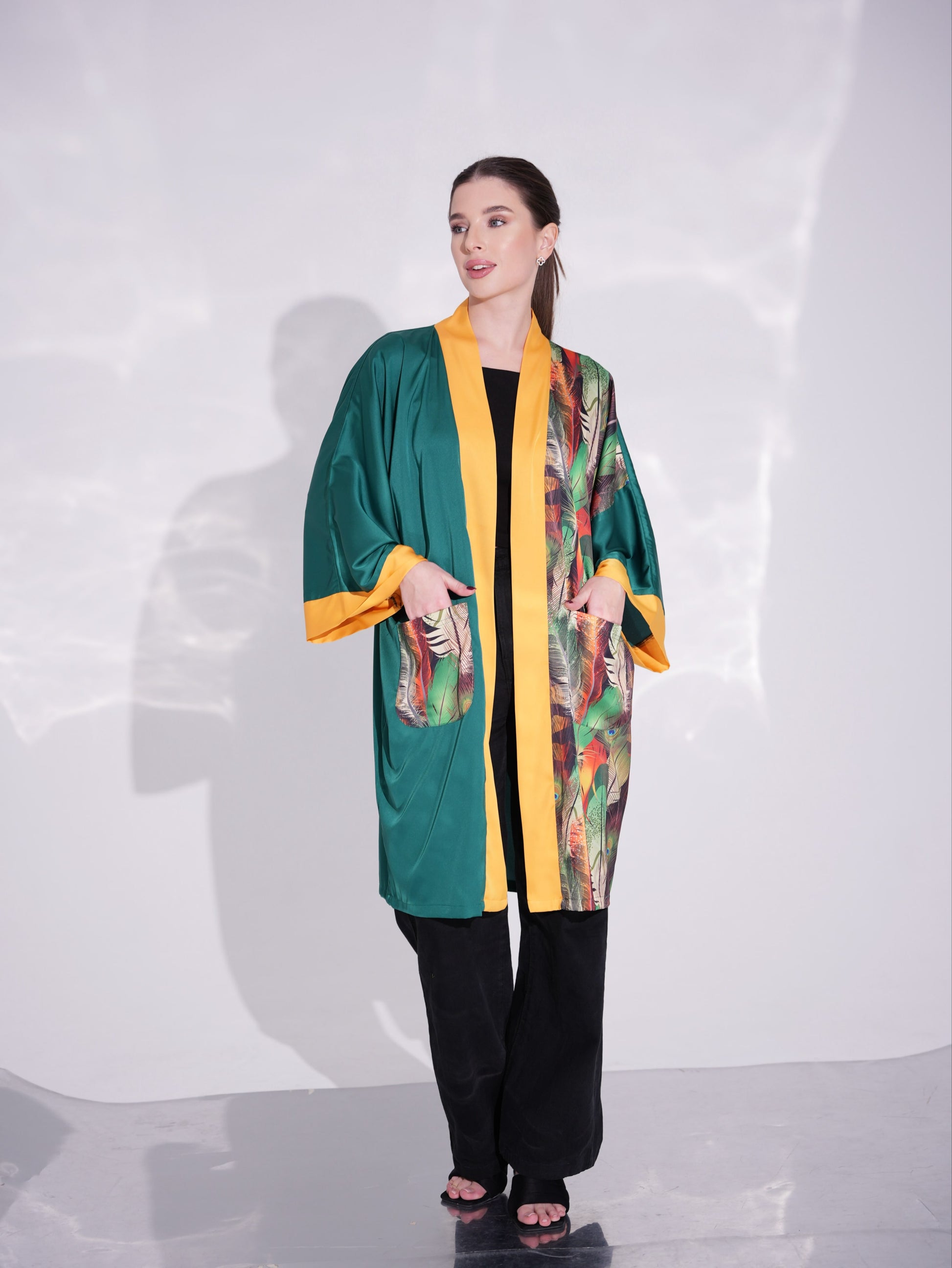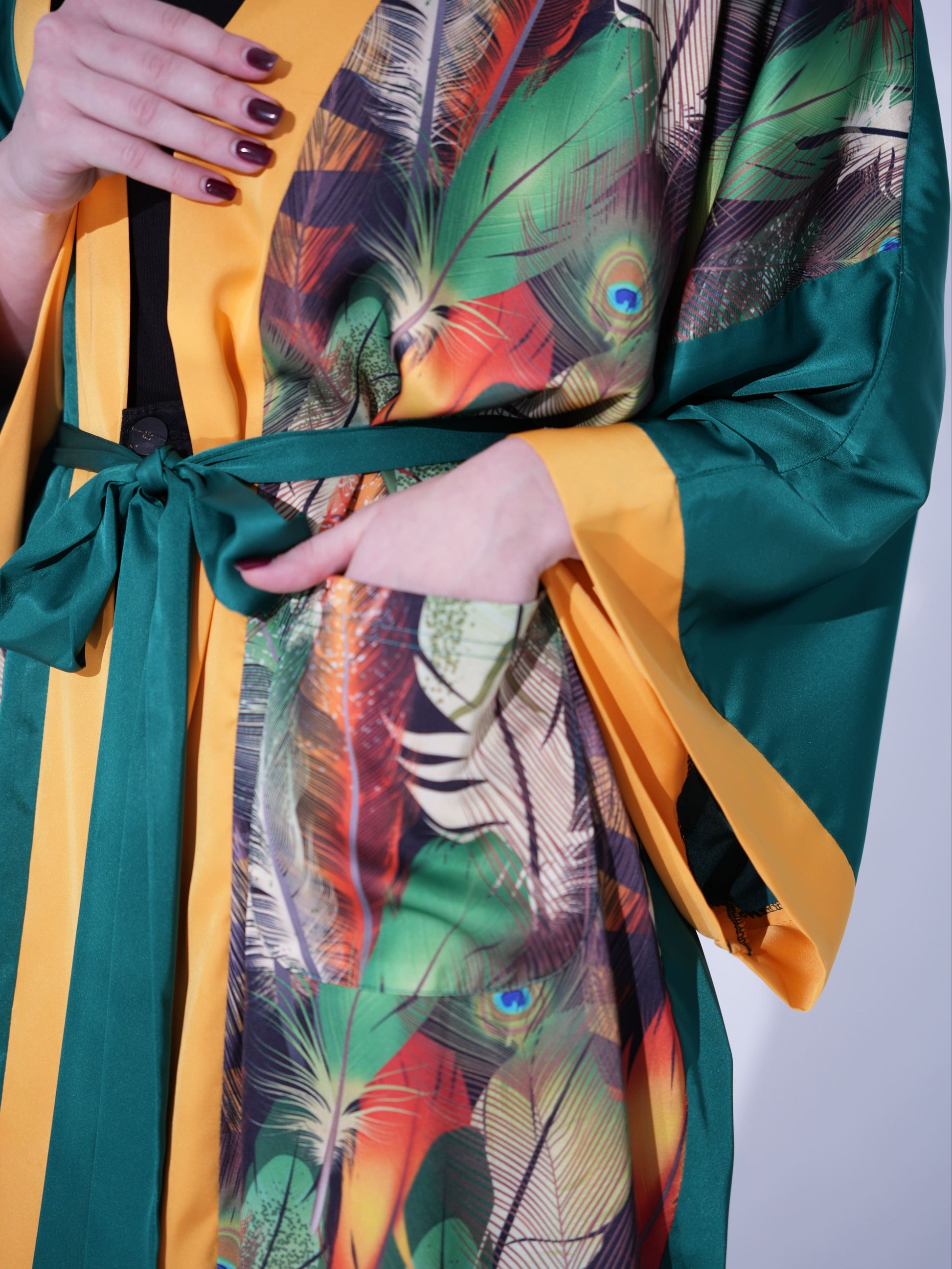 KIMONO EMERALD GREEN GOLD FEATHERS